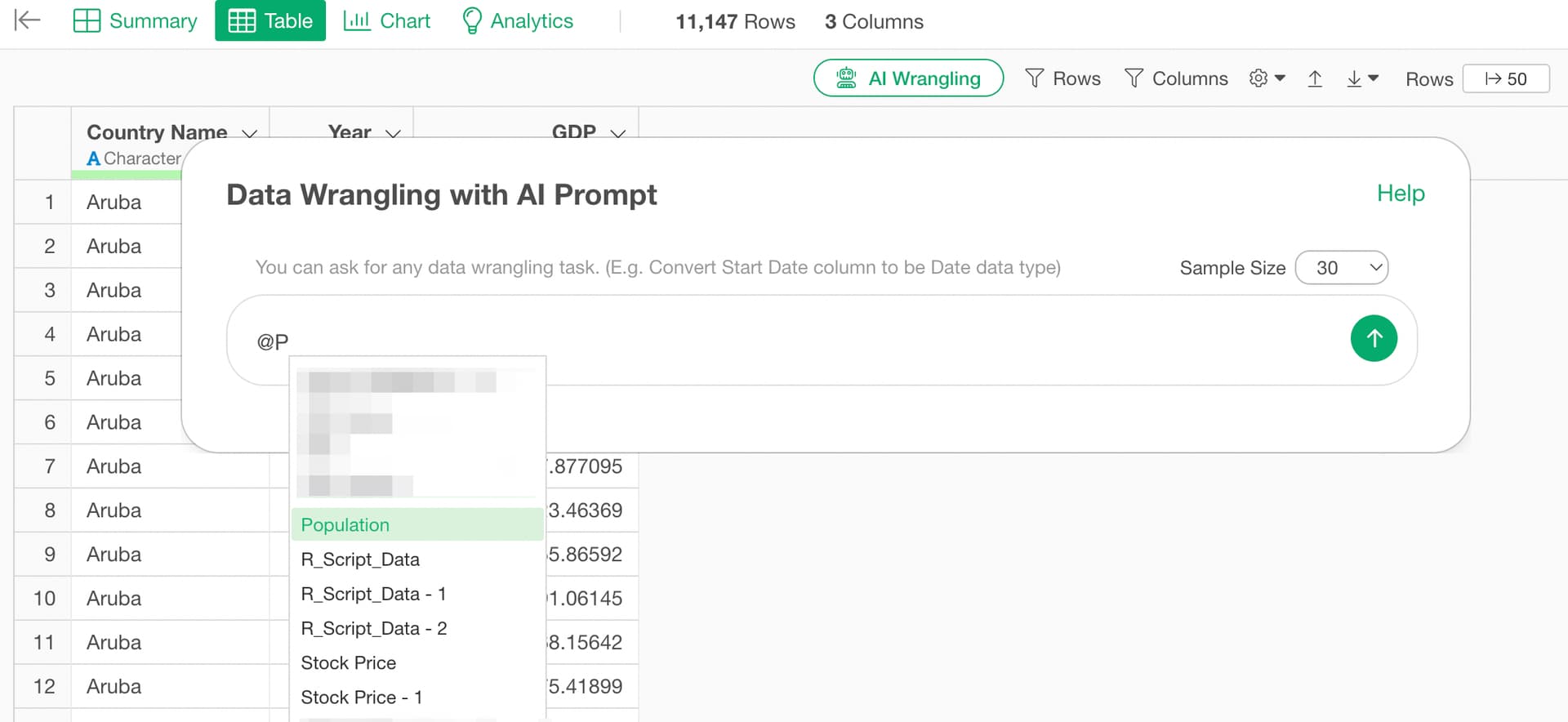 This error is caused by an incorrect join key specification. When you don’t use “@data_frame” to specify the data frame in your prompt instructions, the AI may not know which key to use for the join and may specify an incorrect key. Therefore, please type “@” to reference the data frame.