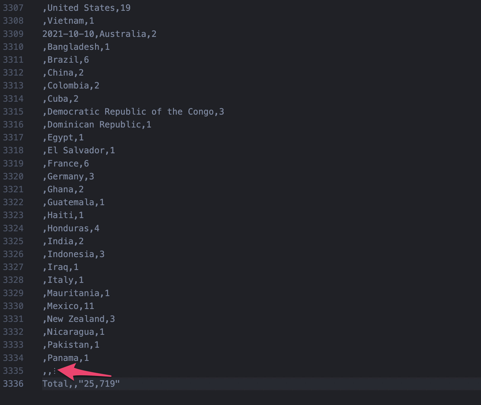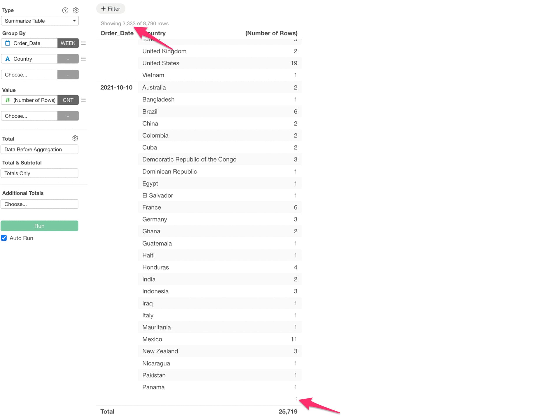 When exporting a CSV from a pivot table or summary table, you may notice that some rows in the middle of the data are displayed as “…”.