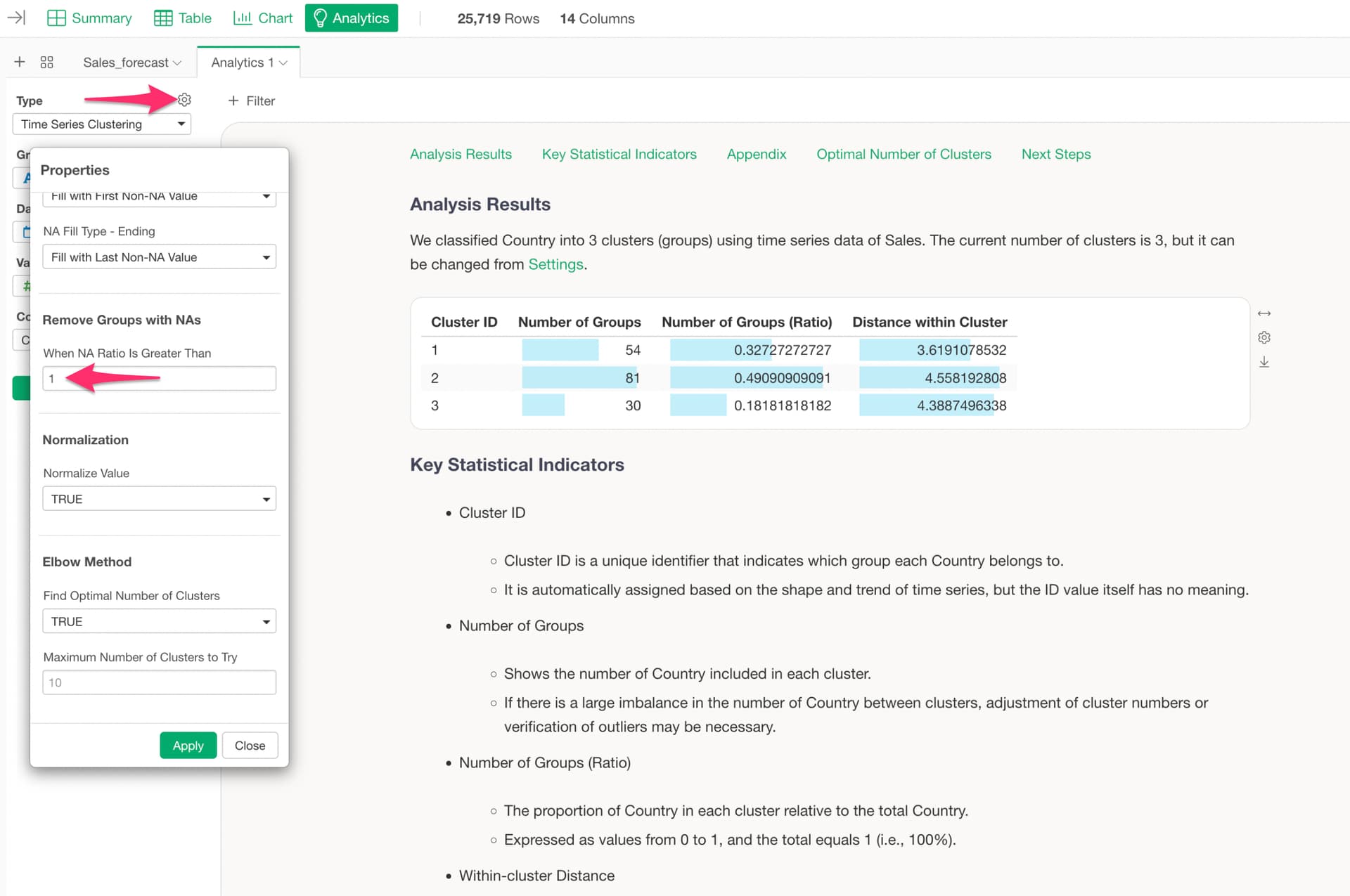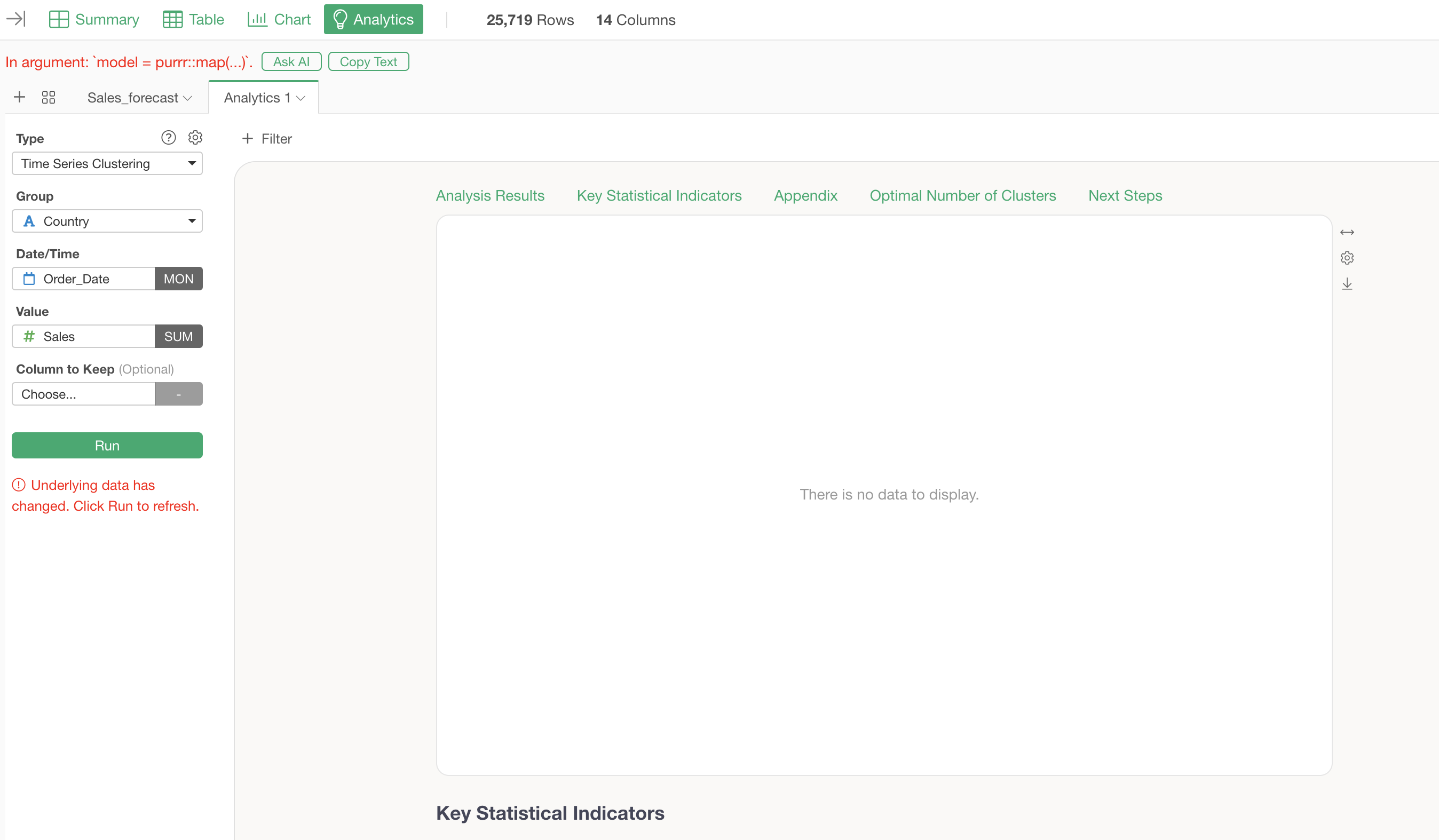 When performing time series clustering, if missing values occur in many groups, an error “In argument:model = purrr::map(…)” may occur.