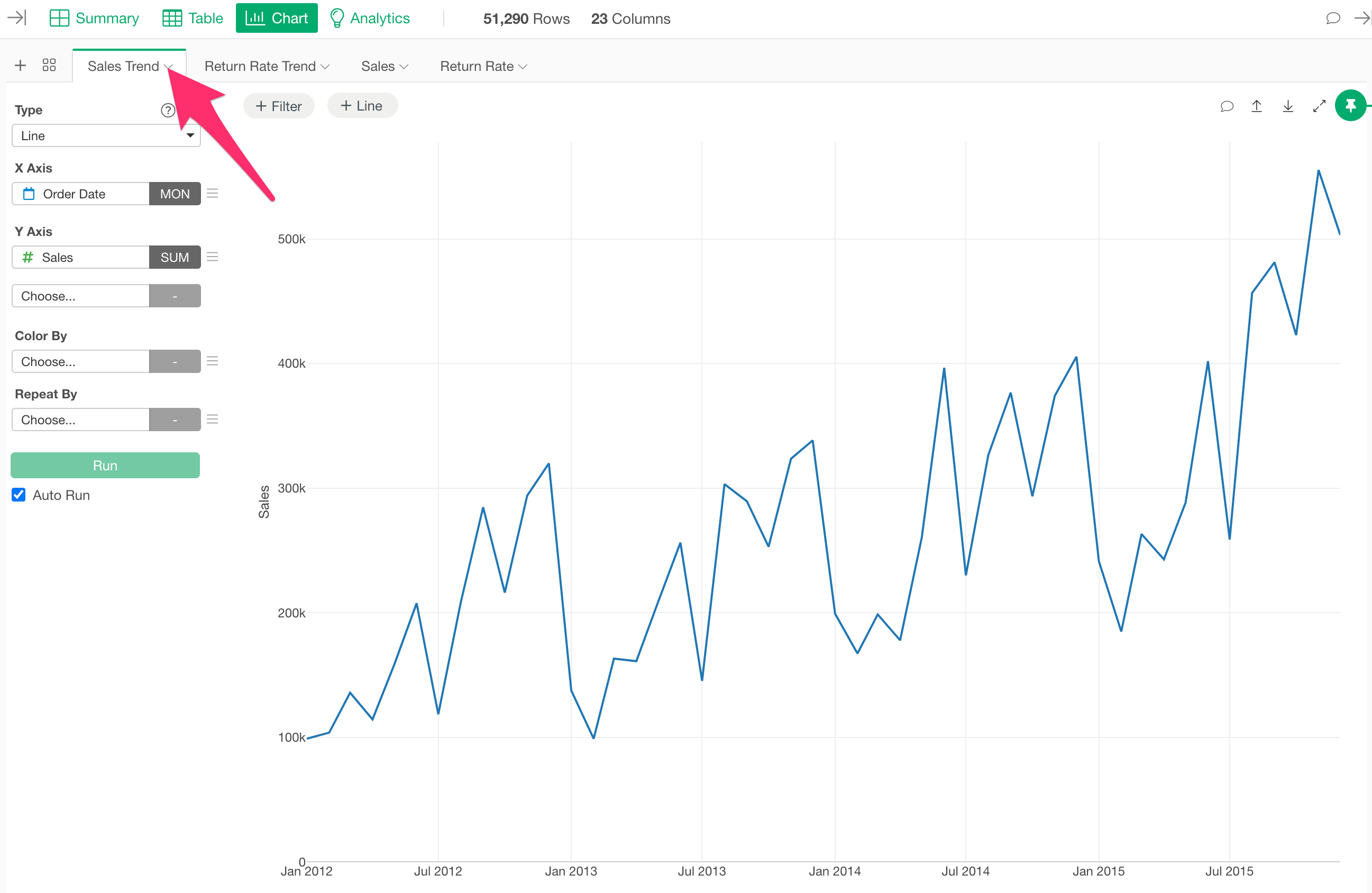 However, even if the chart tab name is updated later, the chart title displayed on the dashboard will not reflect this change, even after rerunning the dashboard.