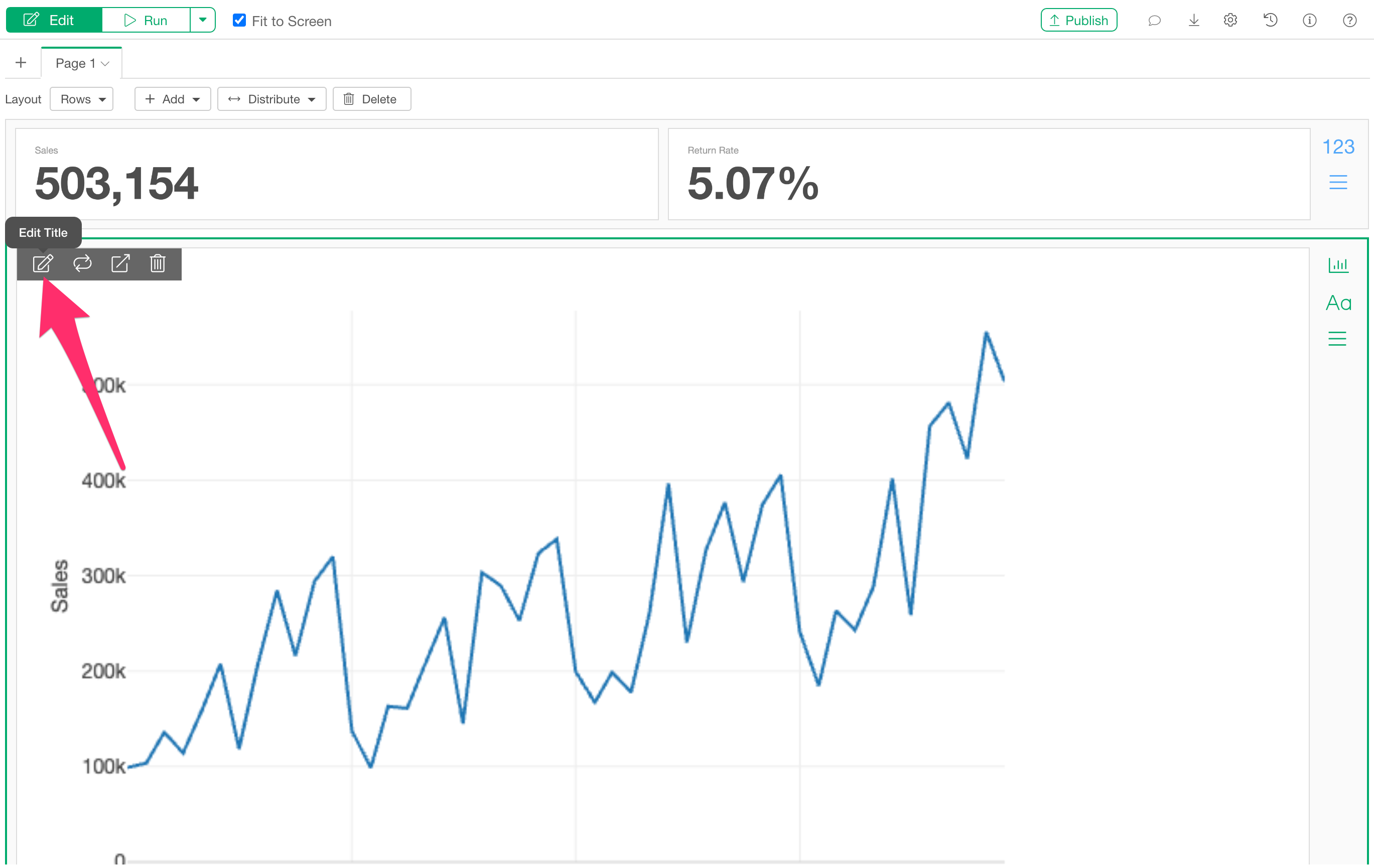 If you want to change the title of a chart that has already been inserted into a dashboard, please click the edit button on the chart title and manually set the updated title.