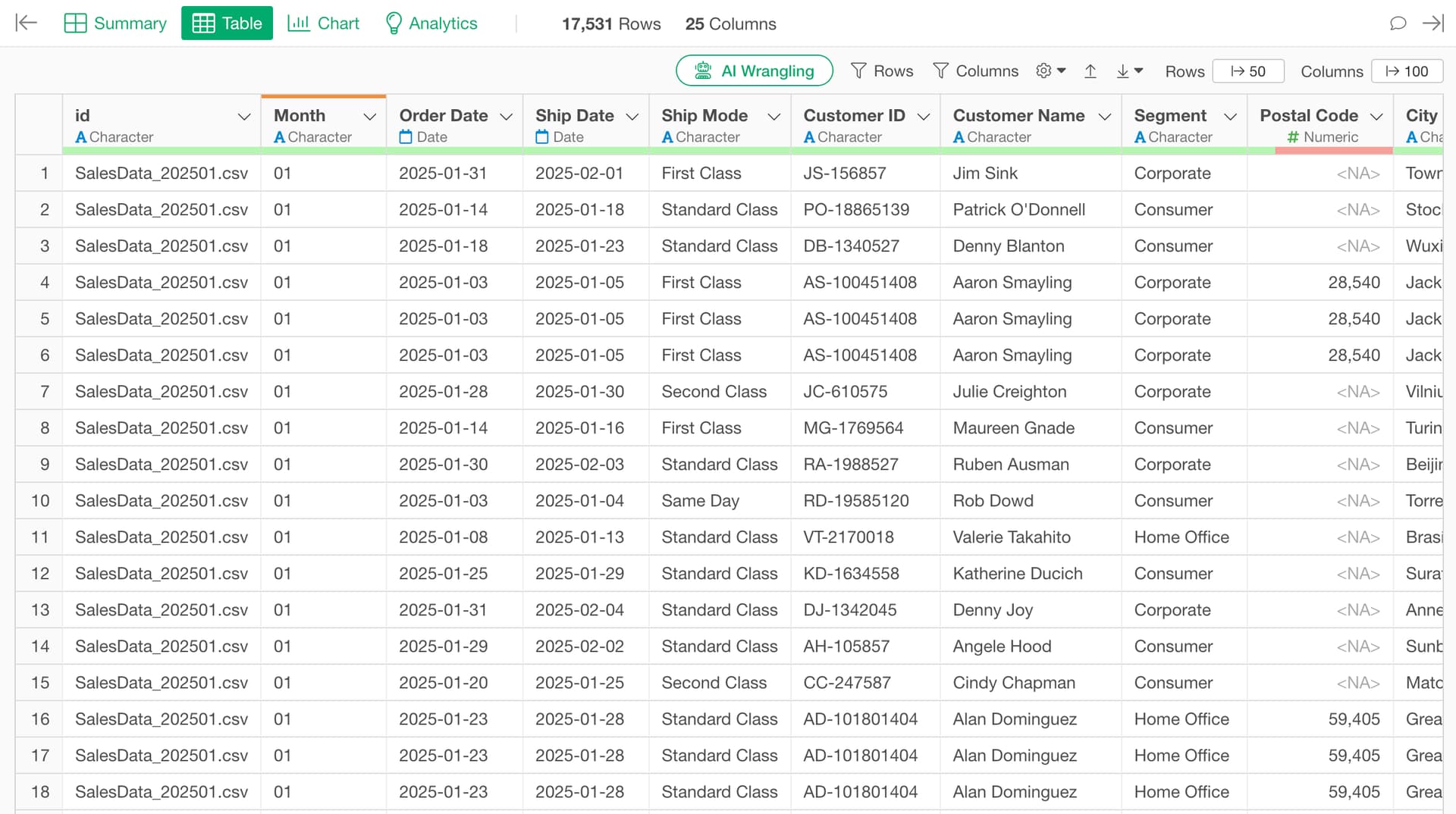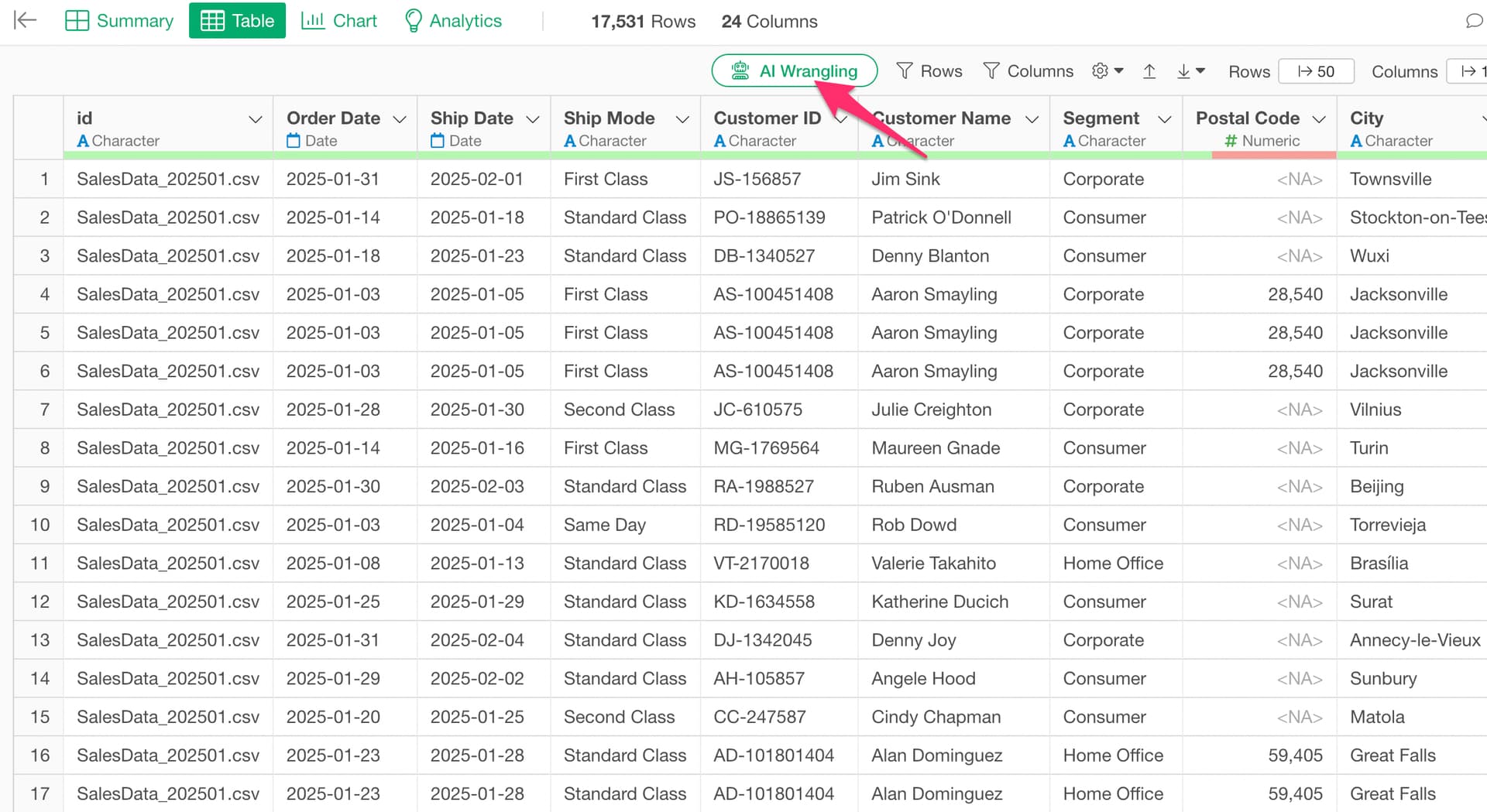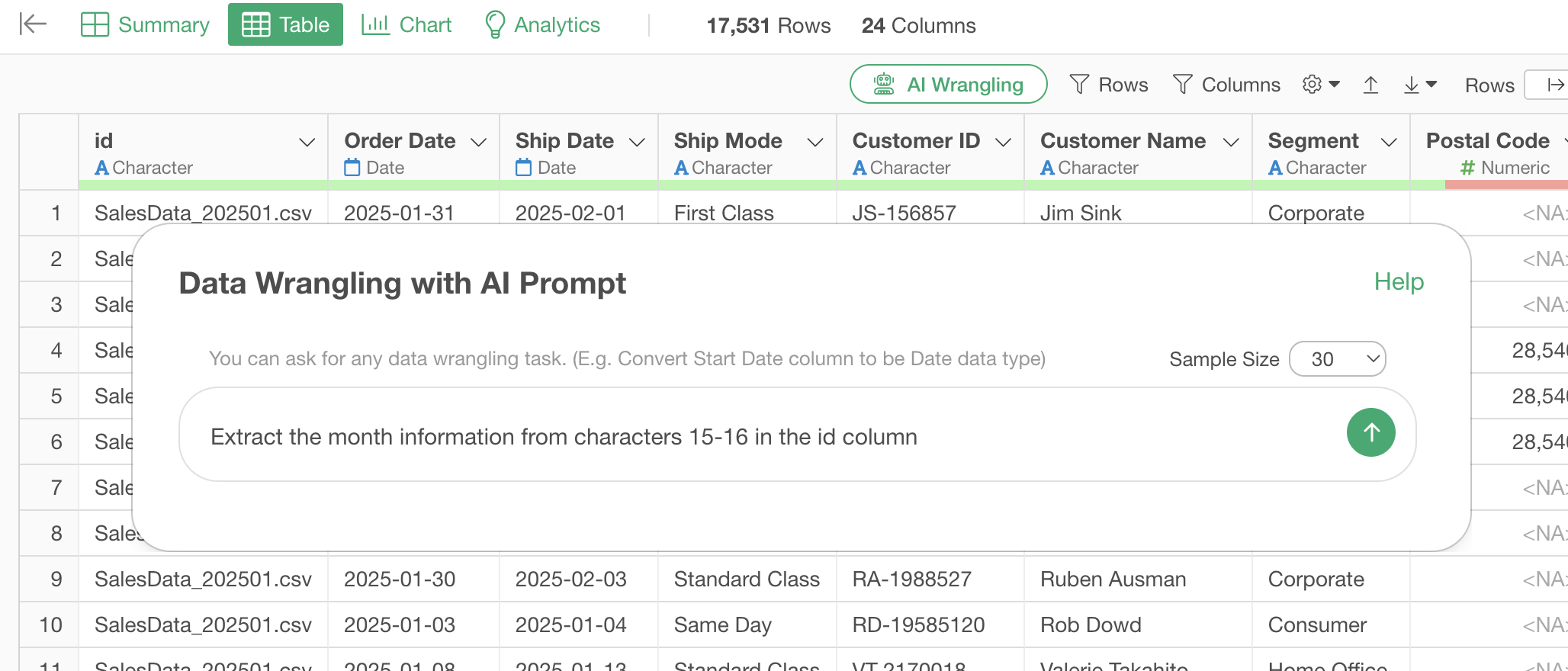 If you want to execute this more easily, you can use the “AI Wrangling” feature.