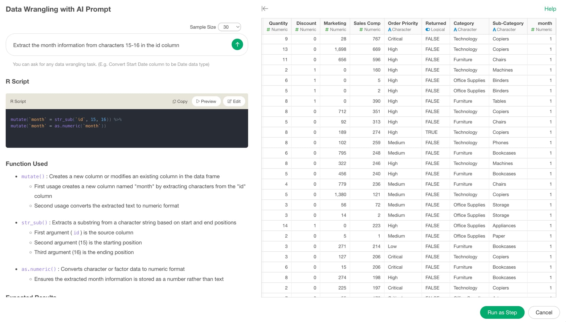 Using the AI prompt feature, you can easily extract only the month portion.