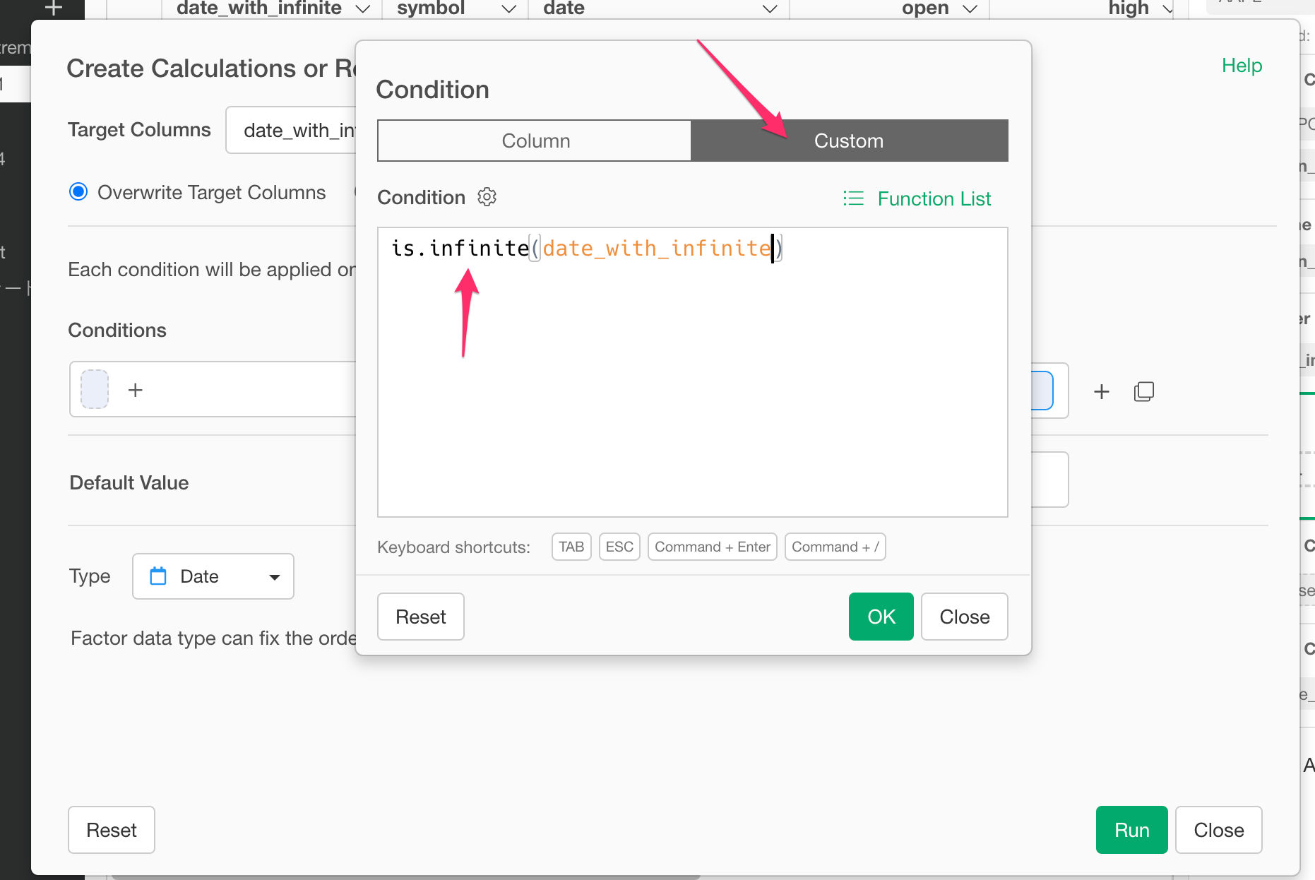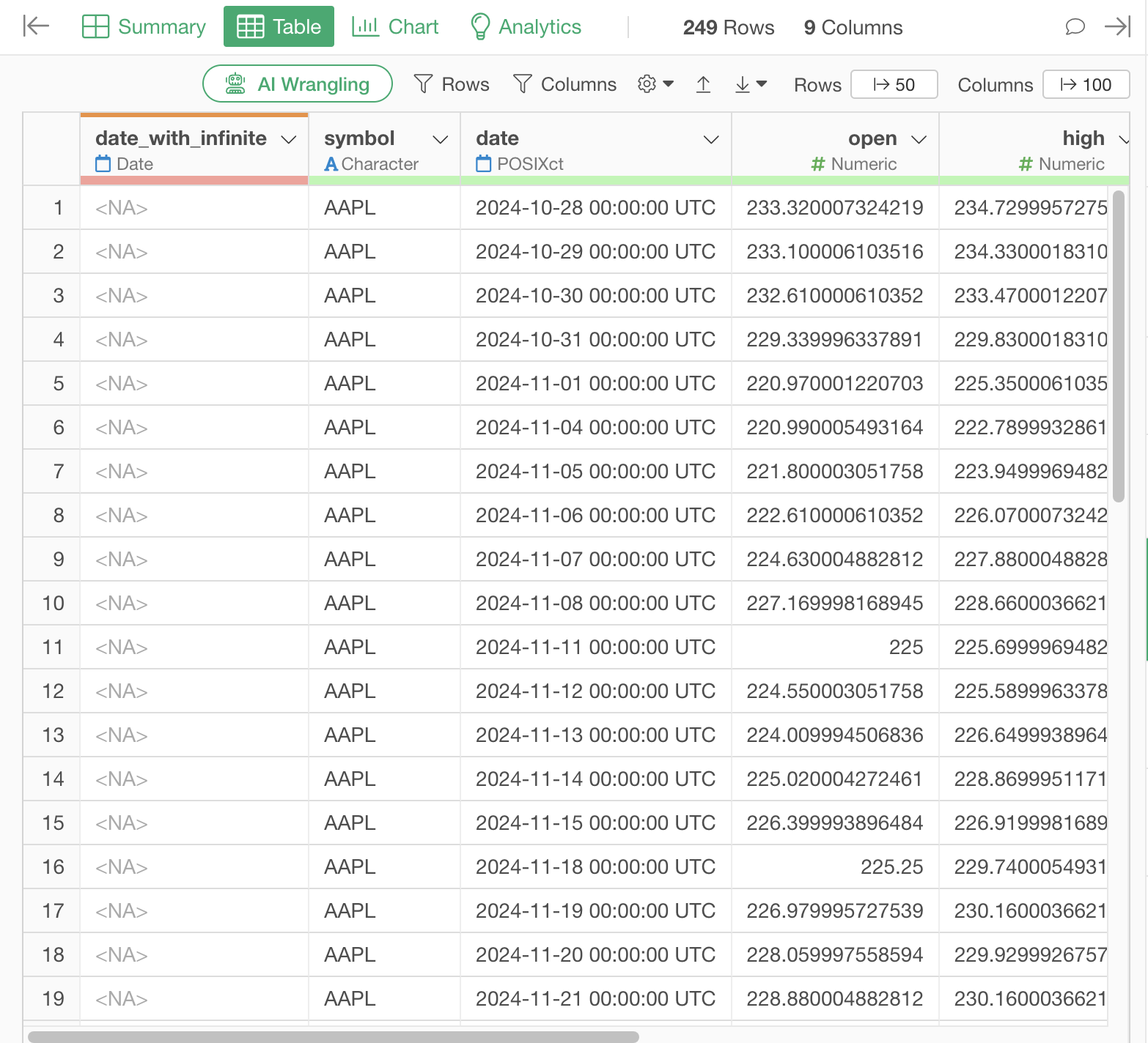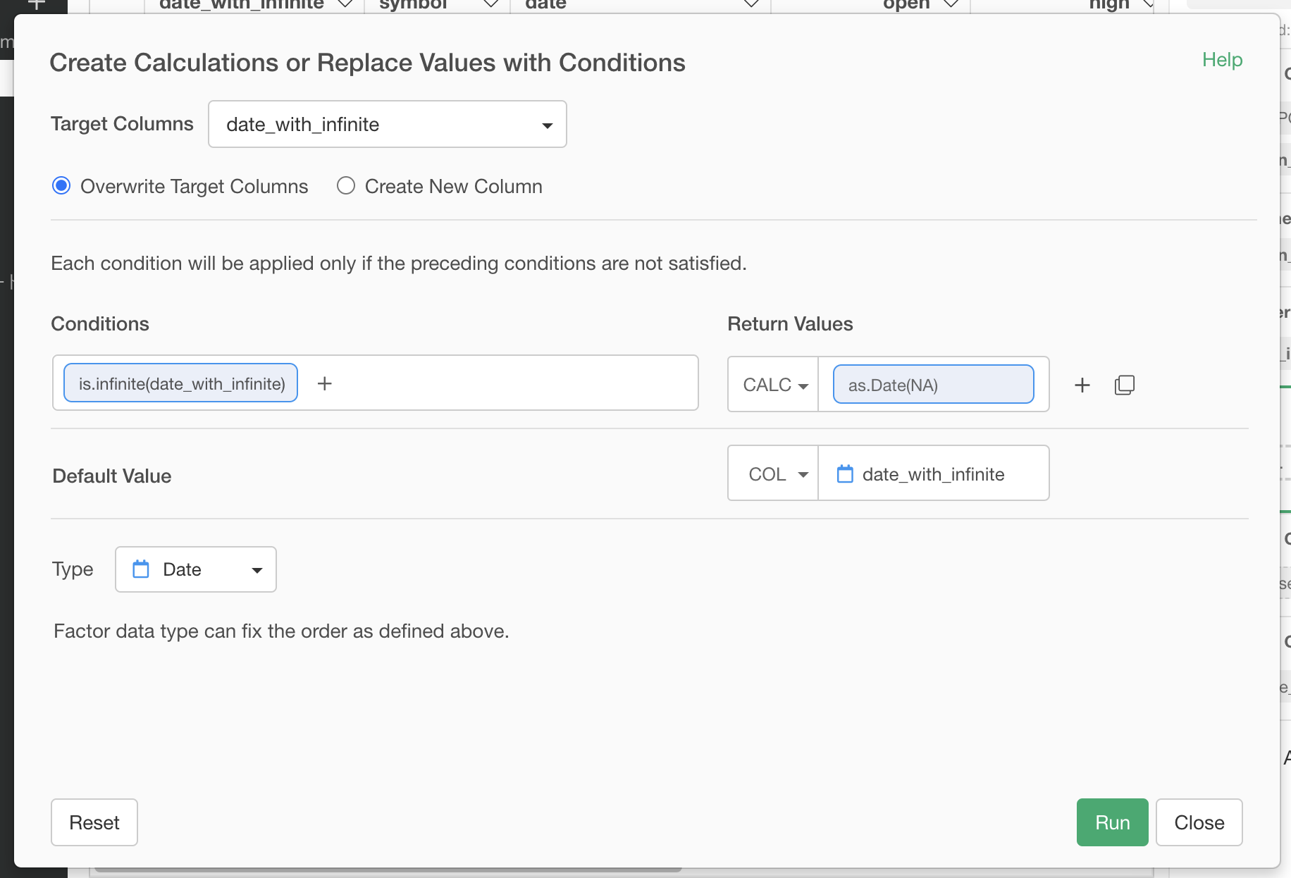 When you have Inf values in date or datetime (POSIXct) columns and want to replace them with missing values: