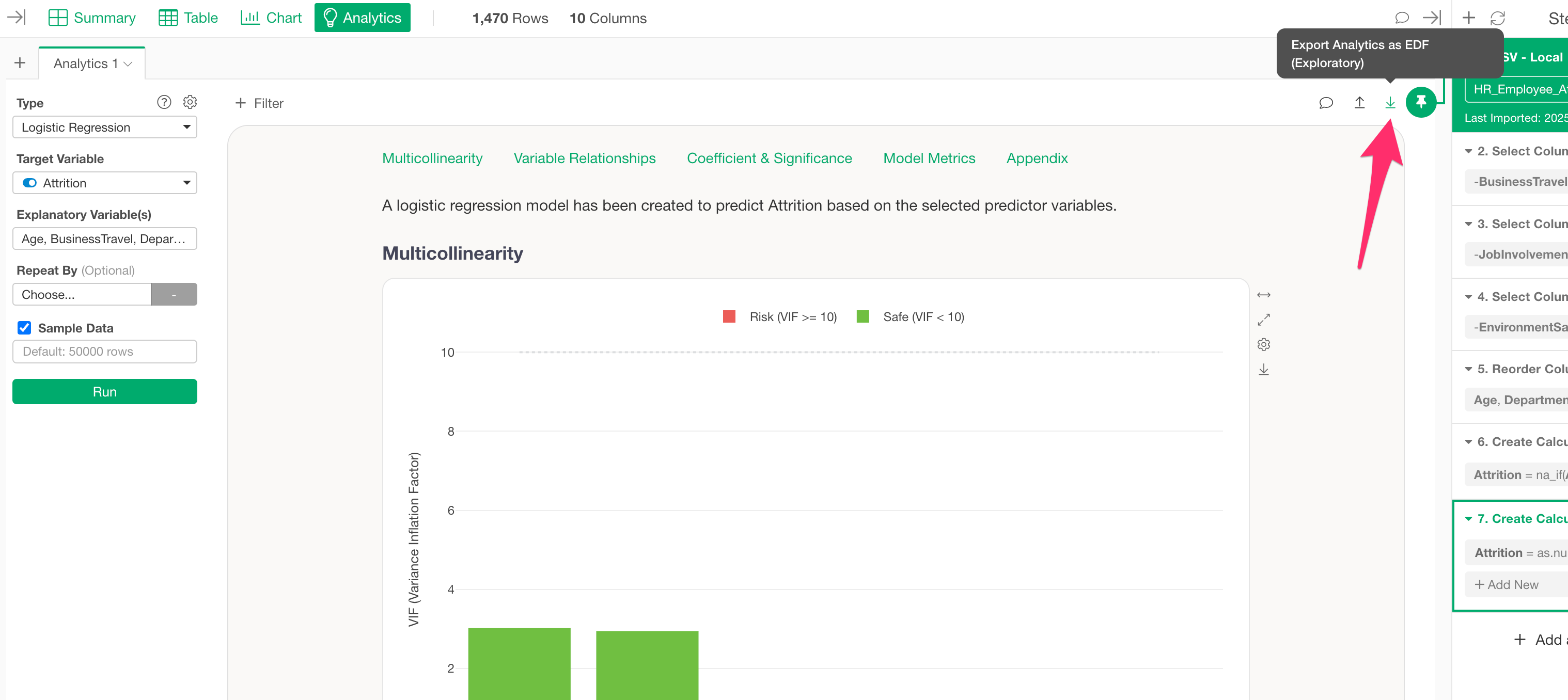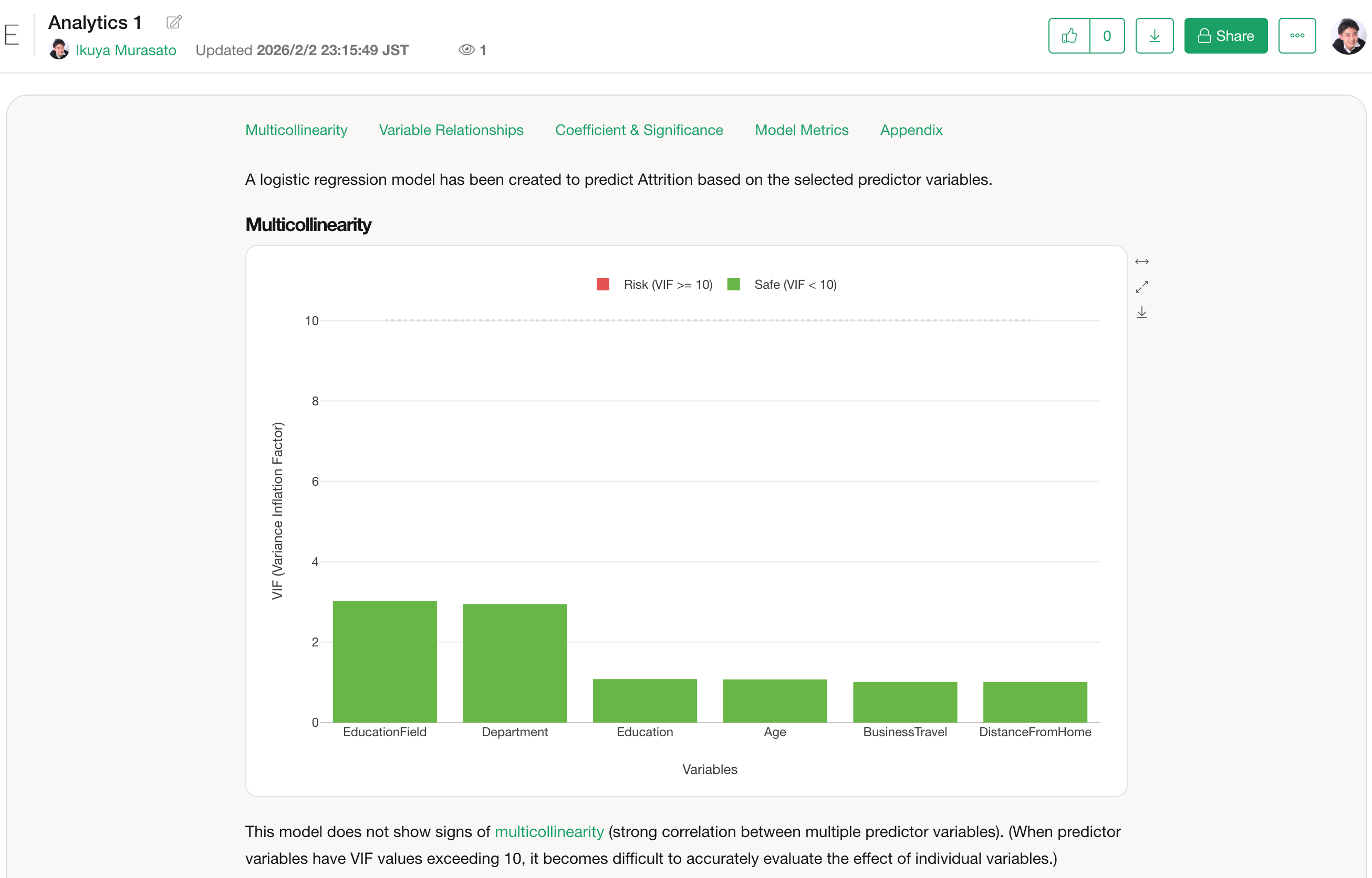 However, if you want to share your results with someone who is not an Exploratory user, you can publish your Analytics to the server. This allows others to view the results directly through their web browser by sharing the link with them.