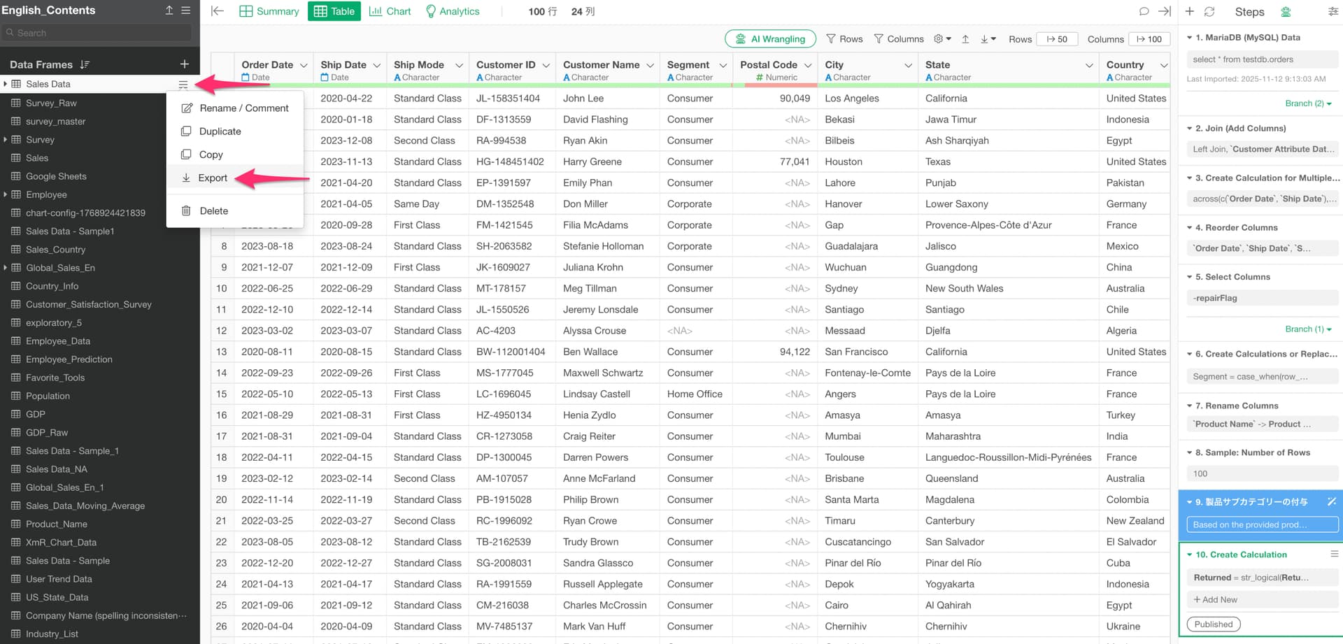 By publishing data to the Exploratory Server, other members can import that data from the “Data Catalog.” Since you can set up a schedule to automatically refresh published data, your team can always work with the latest data.